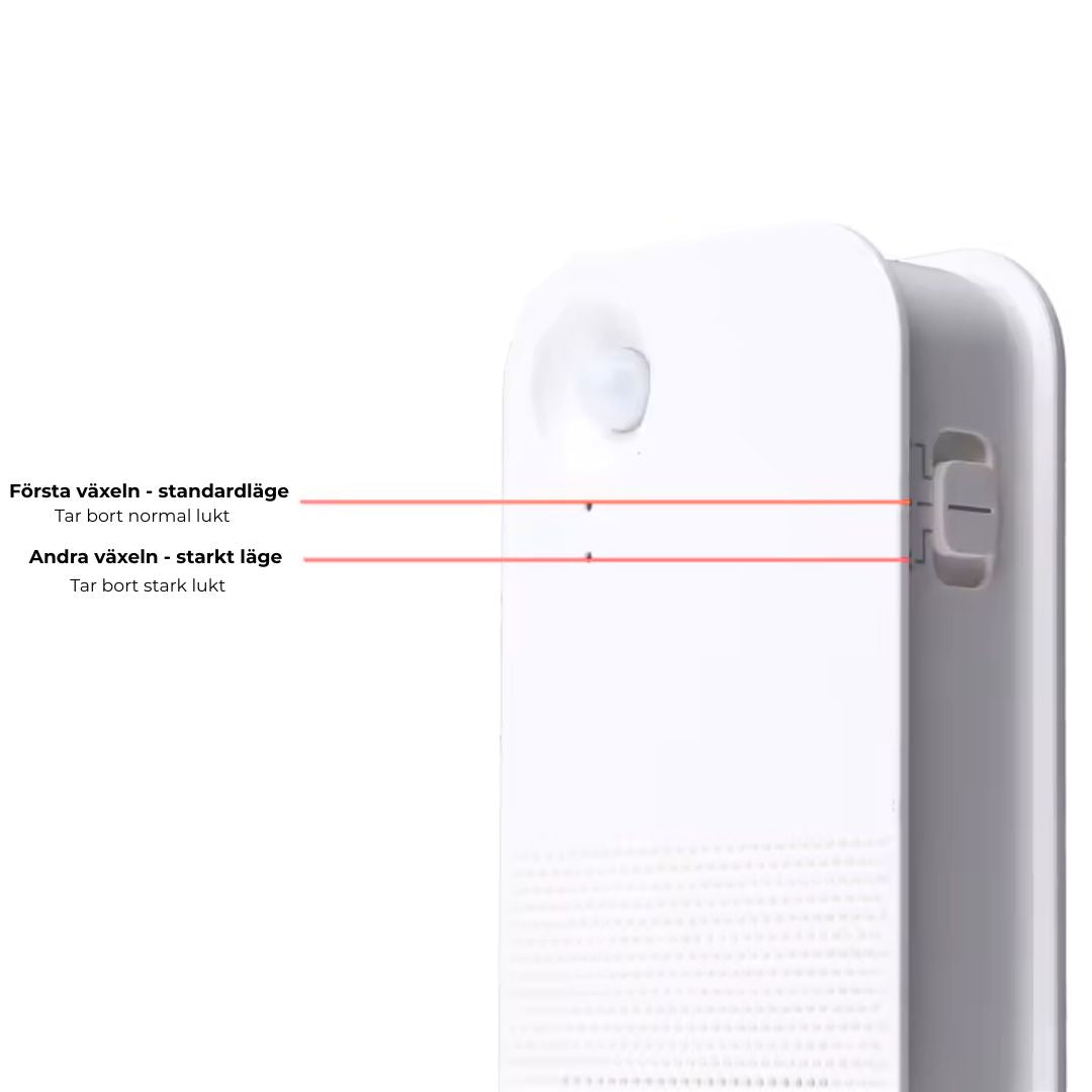 Airclean finns i två varianter: en batteridriven modell med upp till 45 dagars driftstid och två manuellt justerbara lägen, samt en uppladdningsbar version som automatiskt anpassar prestandan och håller i upp till 15 dagar efter tre timmars laddning. Den smarta sensortekniken aktiverar luftrenaren automatiskt när kattlådan används, vilket gör att du slipper tänka på manuell inställning.
