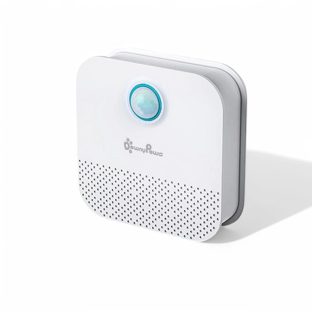 Airclean finns i två varianter: en batteridriven modell med upp till 45 dagars driftstid och två manuellt justerbara lägen, samt en uppladdningsbar version som automatiskt anpassar prestandan och håller i upp till 15 dagar efter tre timmars laddning. Den smarta sensortekniken aktiverar luftrenaren automatiskt när kattlådan används, vilket gör att du slipper tänka på manuell inställning.