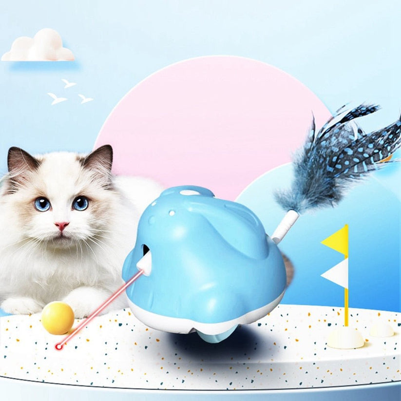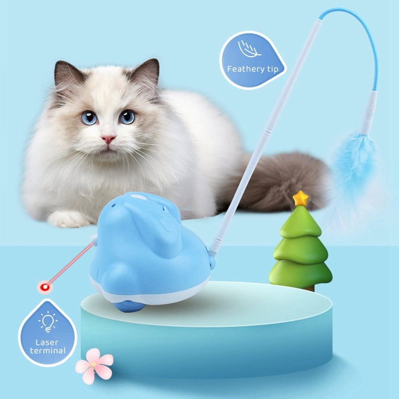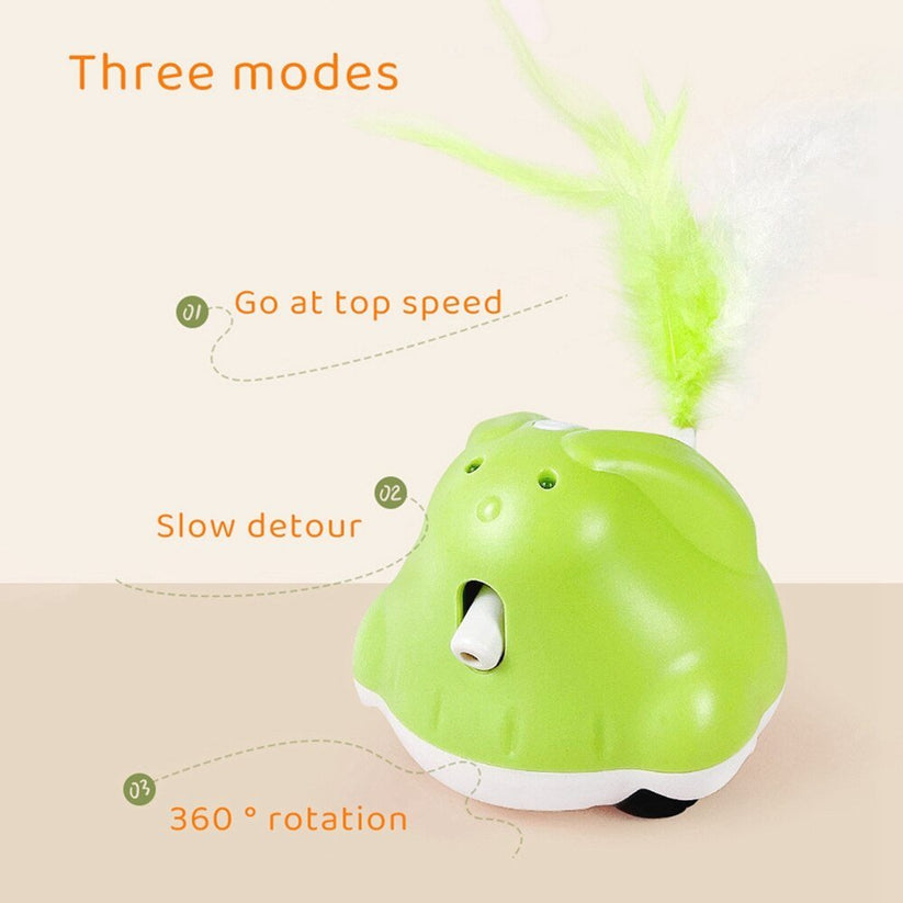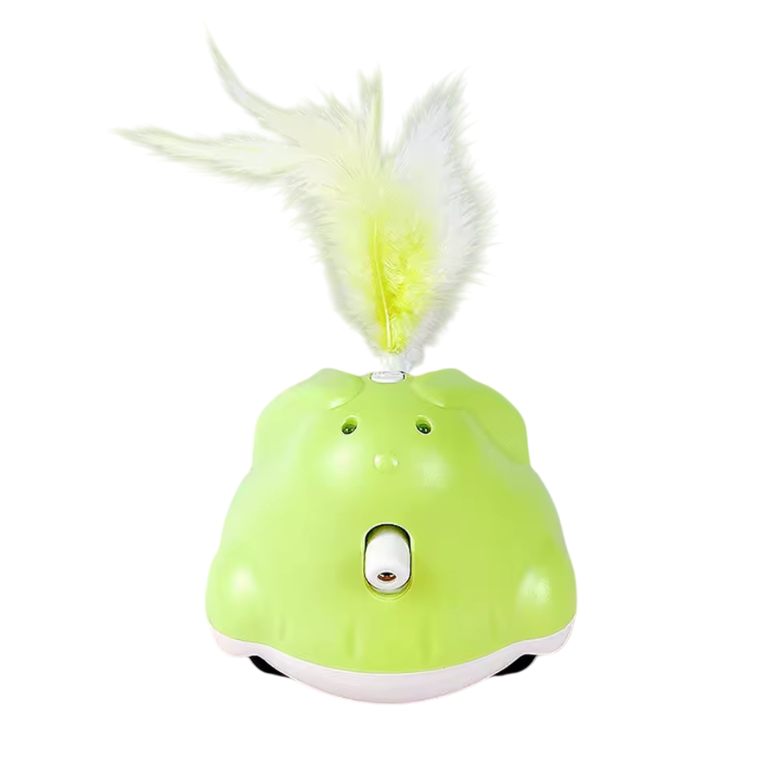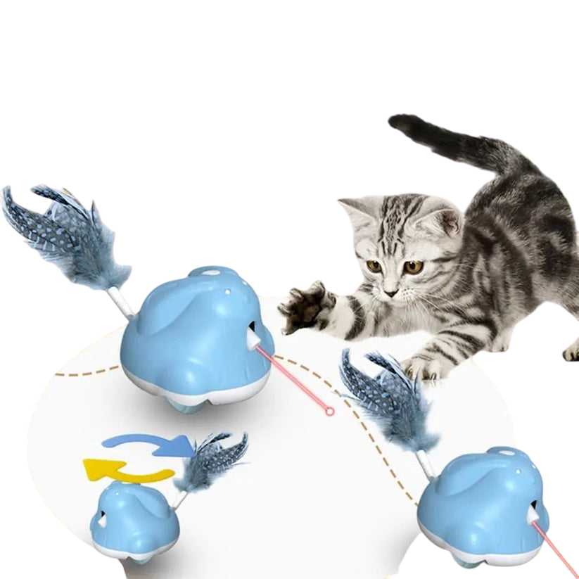 CatChase är en elektrisk kattleksak som ger din katt timmar av underhållning och stimulans. Leksaken rör sig slumpmässigt och fångar kattens uppmärksamhet med en fjäder och LED-ljus, samtidigt som en laserpekare rör sig i olika riktningar för att väcka kattens jaktinstinkt. Den är enkel att använda – bara sätt på strömmen så börjar leksaken röra sig automatiskt. Med ett uppladdningsbart batteri som laddas fullt på cirka 90 minuter kan CatChase erbjuda upp till 10 timmars lek.