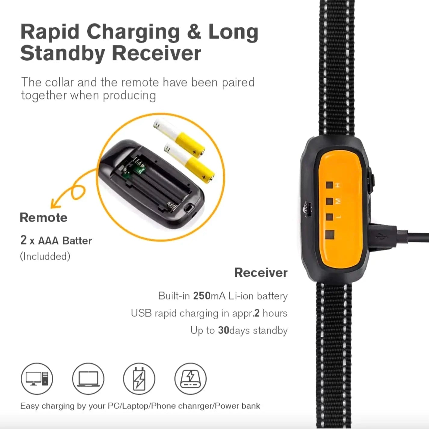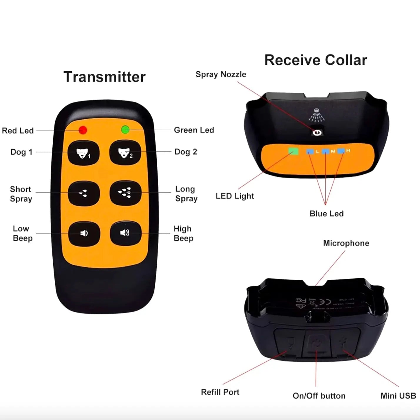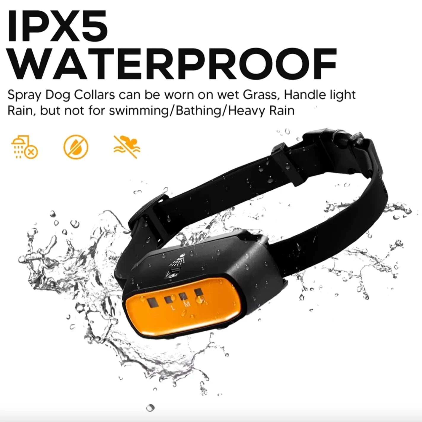 Halsbandet har tre justerbara känslighetsnivåer som gör det enkelt att anpassa för både små och stora hundar. Det är dessutom snabbt uppladdningsbart, vattentåligt och utrustat med LED-indikator som visar när batteri eller spraynivå är låg, så att du alltid har full koll.