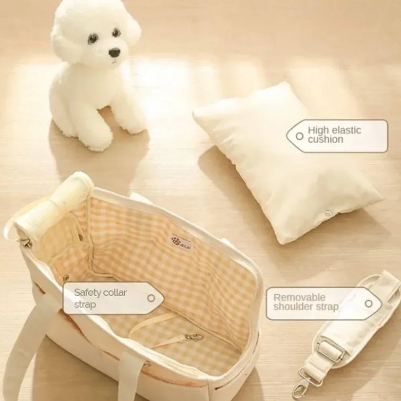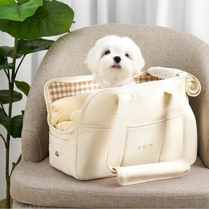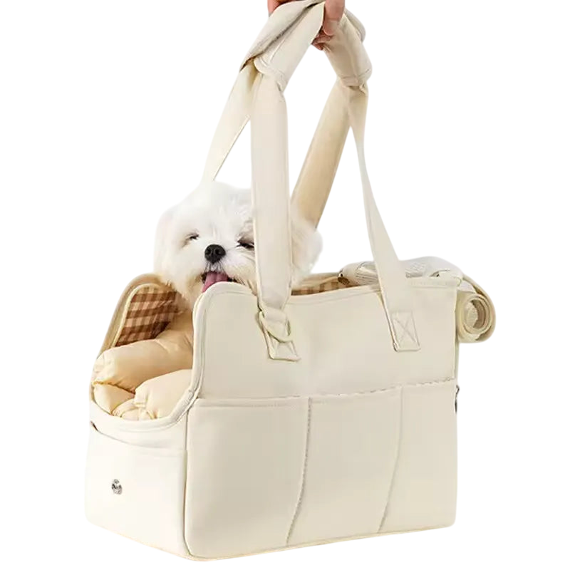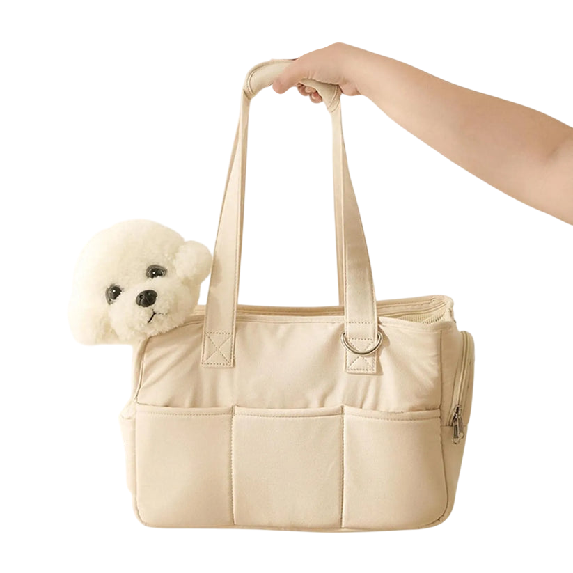 ComfyPaws Bärväska förenar elegant design med praktisk funktion för små hundar och katter upp till 7 kg. Den tidlösa beige färgen och robusta konstruktionen i bomull och polyester gör den både stilren och hållbar, samtidigt som den ger ditt husdjur en trygg och bekväm plats under resan.