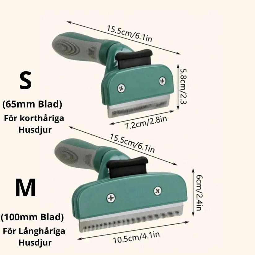 Vår fällskrapa är det självklara verktyget för att snabbt och enkelt reda ut tovor och trassel i ditt husdjurs päls. Med en effektiv design avlägsnar den lös päls och damm, vilket gör pälsen lättskött och fräsch. Produkten finns i två storlekar för att passa både kortare och längre pälsar, vilket gör den anpassningsbar efter just ditt djurs behov.