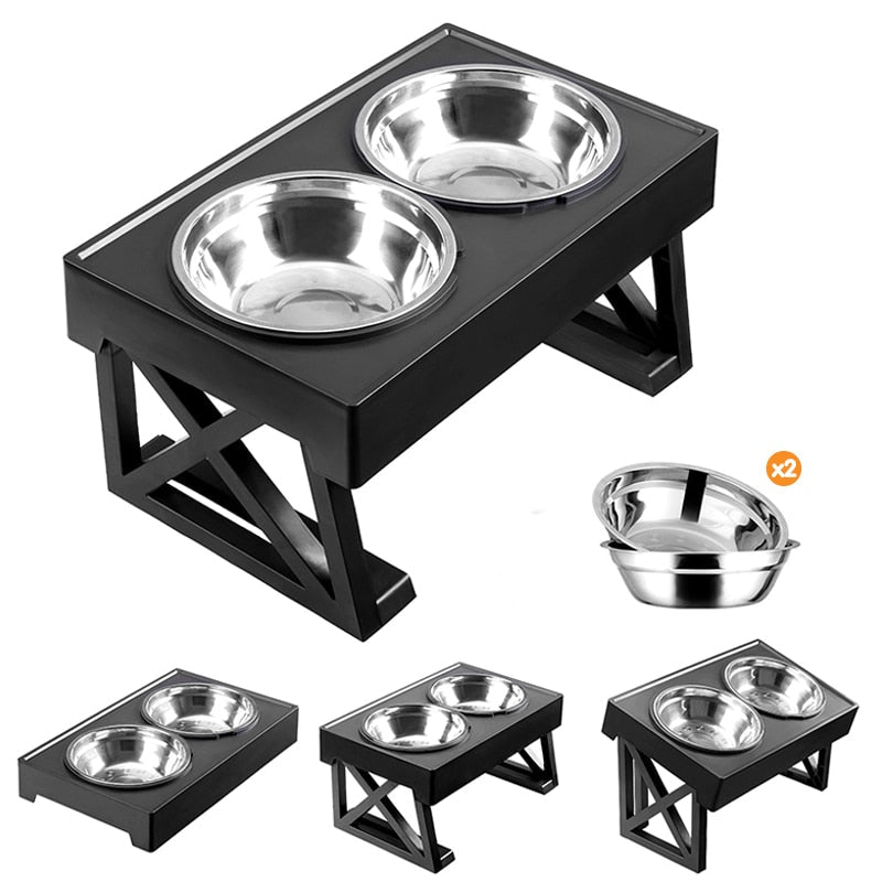 Den justerbara upphöjda matskålen har en lutningsfunktion upp till 15 grader och tre höjdnivåer för anpassad matning efter ditt husdjurs behov. Perfekt för att förbättra matsmältningen och minska risken för obehag.