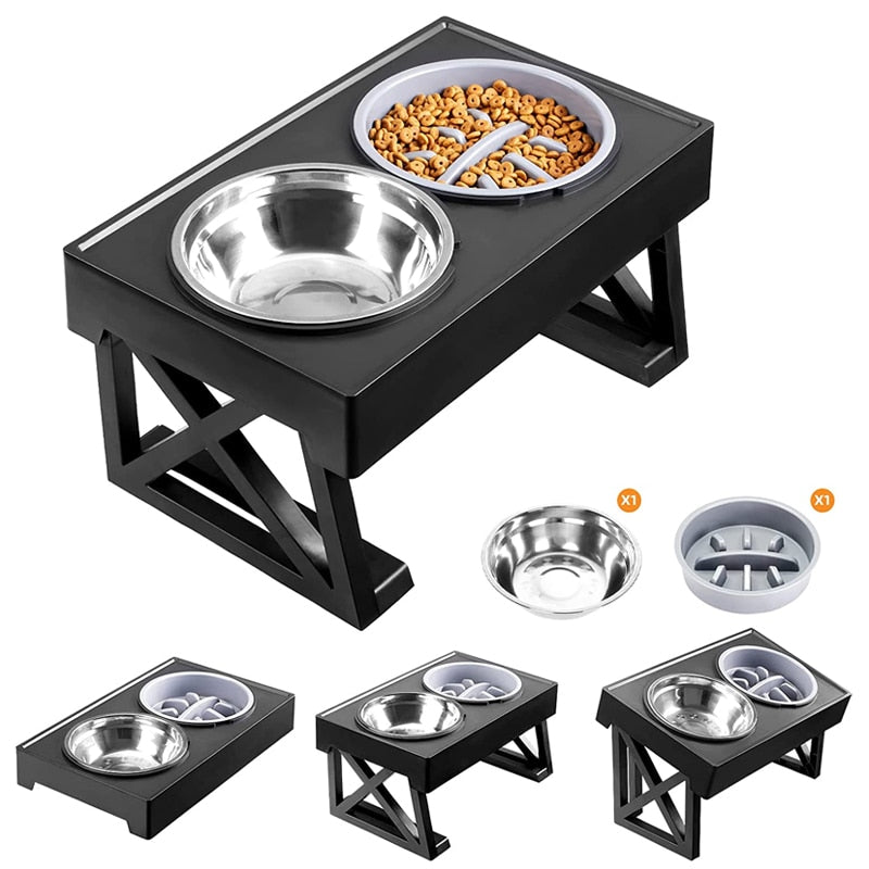 Justerbar Upphöjd Matskål för Hund & Katt – Lutningsbar & Slow Feeder