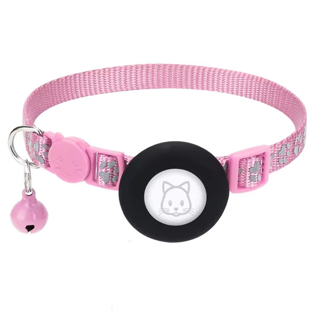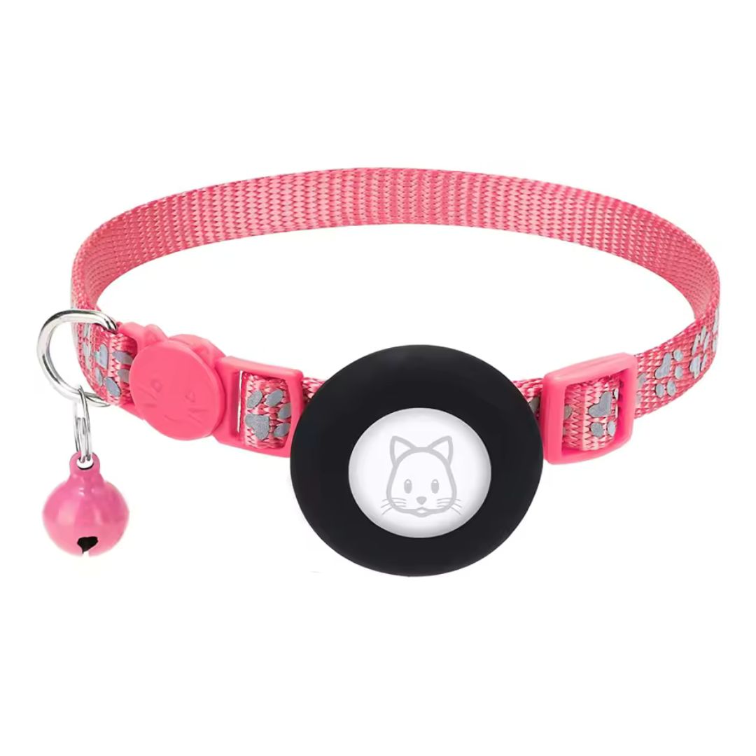 Ge din katt både stil och trygghet med vårt unika Airtag-katthalsband i elegant rosa och svart. Det här halsbandet kombinerar en snygg design med smarta funktioner som gör att din katt syns och känns säker, oavsett tid på dygnet.