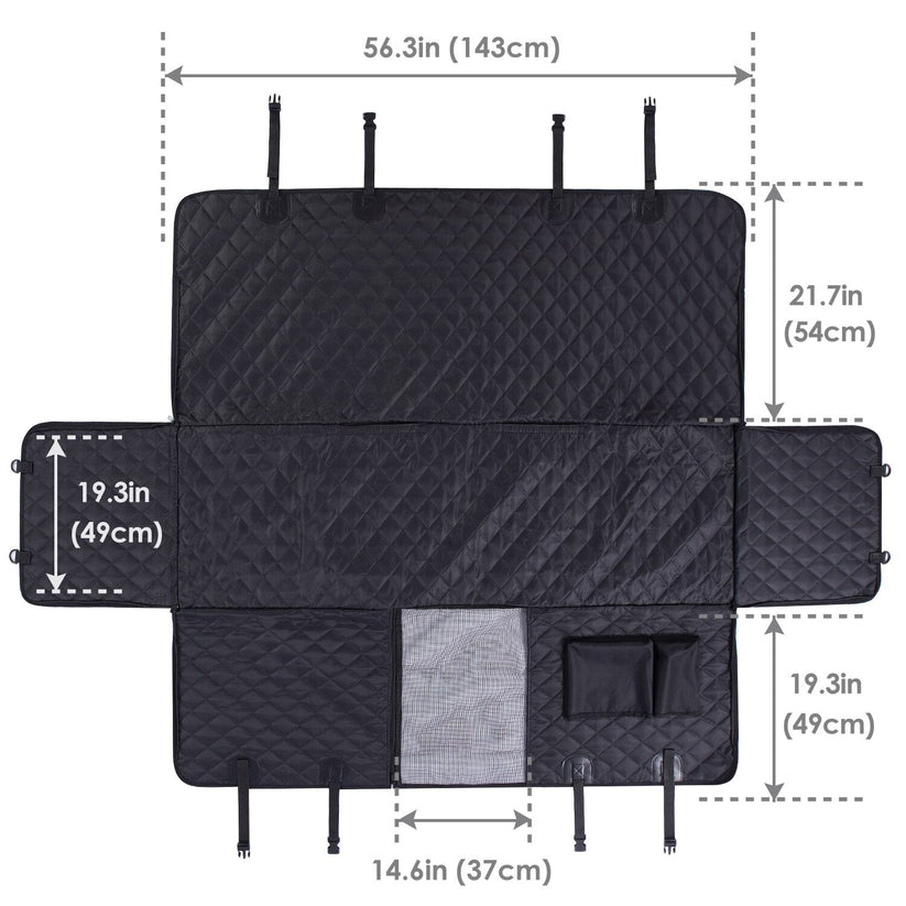 Med en mjukt vadderad yta fungerar skyddet också som en skön viloplats. Det är lätt att rengöra med en fuktig trasa eller dammsugare – idealiskt för husdjursägare som vill resa smidigt utan att tumma på vare sig komfort eller bilens skick.