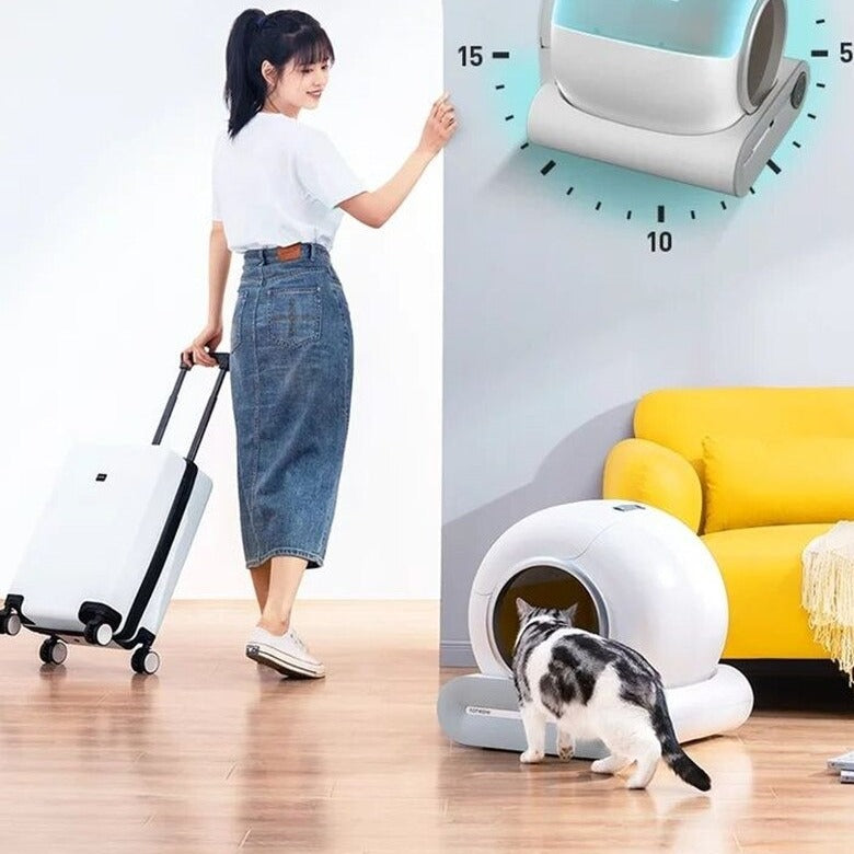 Styr och övervaka enkelt lådan via en app där du kan anpassa rengöringscykler och följa din katts hälsa med inbyggd viktmätning. LitterLuxe Pro sparar tid åt dig genom att sköta rengöringen själv och låter dig fokusera på det som verkligen betyder något – din katt.