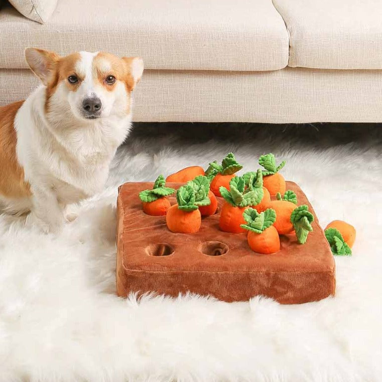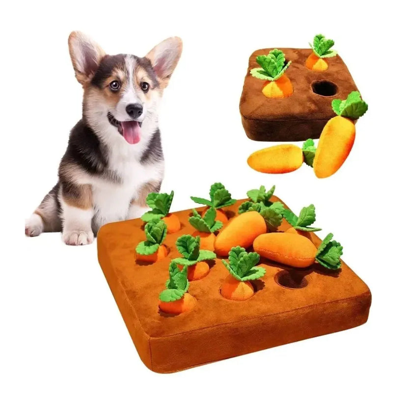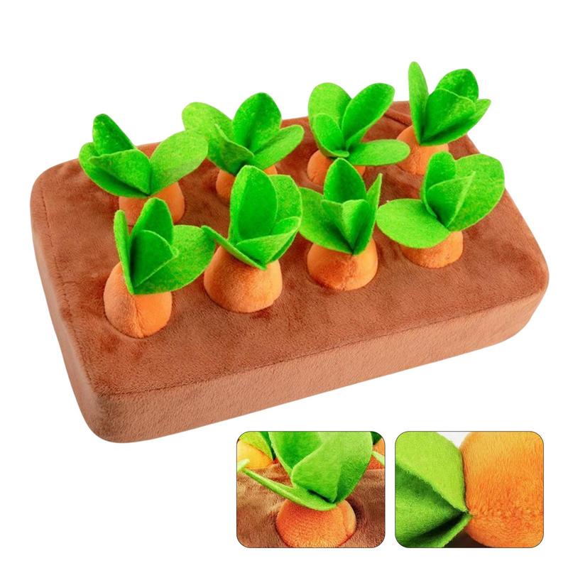 Den färgglada designen med morotsformade fickor låter dig gömma godis eller torrfoder, vilket uppmuntrar din hund att använda sin nos och naturliga instinkter för att hitta maten. Det stärker koncentrationen, problemlösningsförmågan och minnet, samtidigt som det gör matstunden roligare och mer givande.