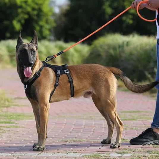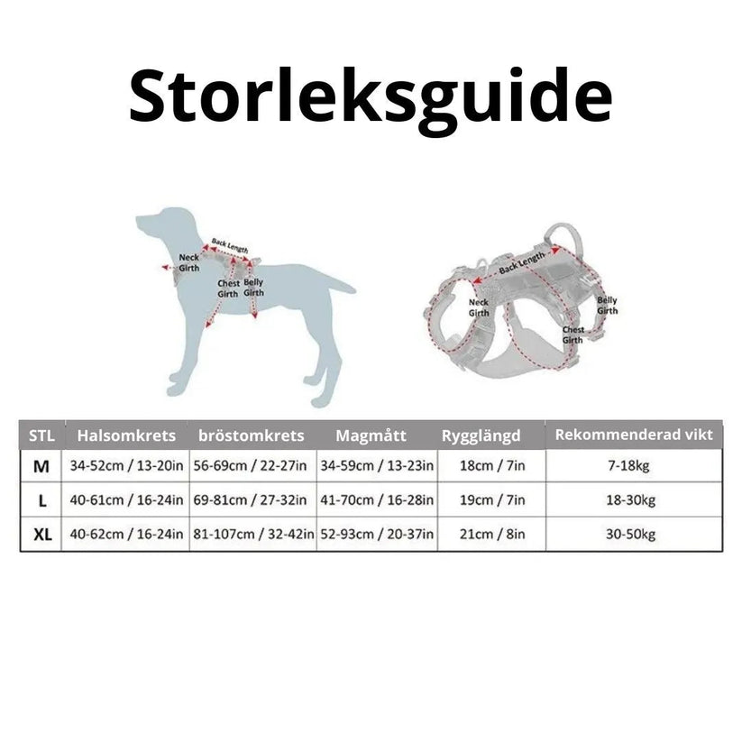 Vårt dragsele erbjuder en perfekt kombination av säkerhet, komfort och anpassning för din hund. Med sin anti-dragfunktion får du full kontroll under promenader samtidigt som selen är utformad för att ge en naturlig och bekväm passform som minskar risken för skador och oönskad dragning. Dessutom är selen rymningssäker, vilket ger dig trygghet i alla situationer.