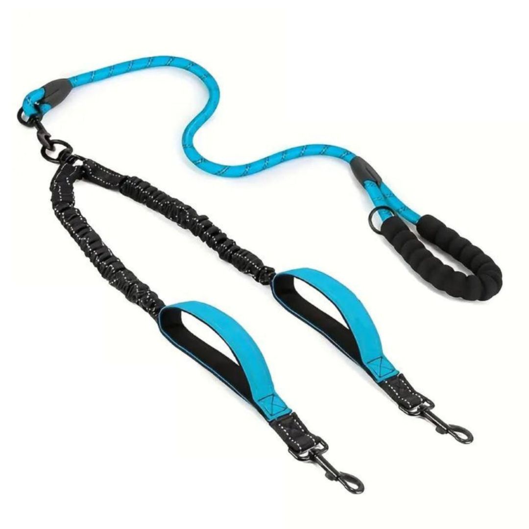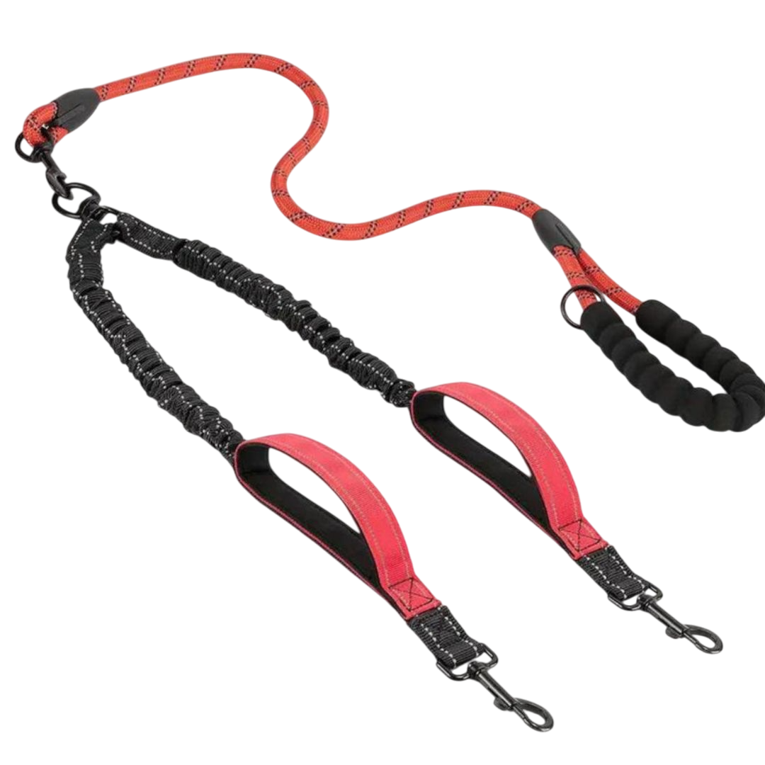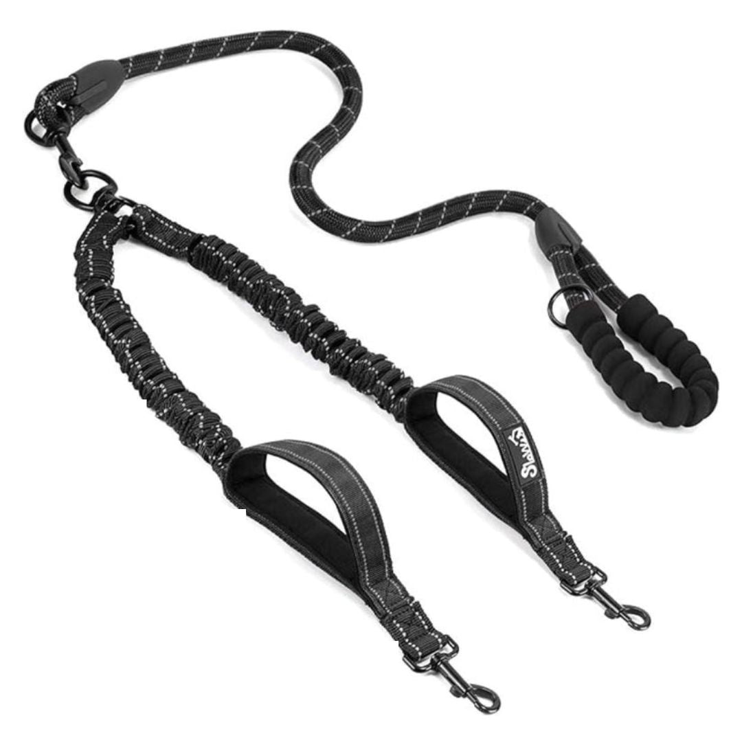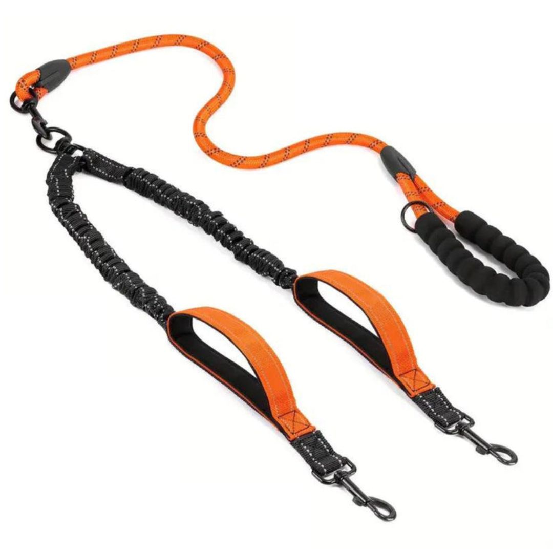 Reflekterande Dubbelkoppel för Hund – Elastiskt, Justerbart med Påshållare