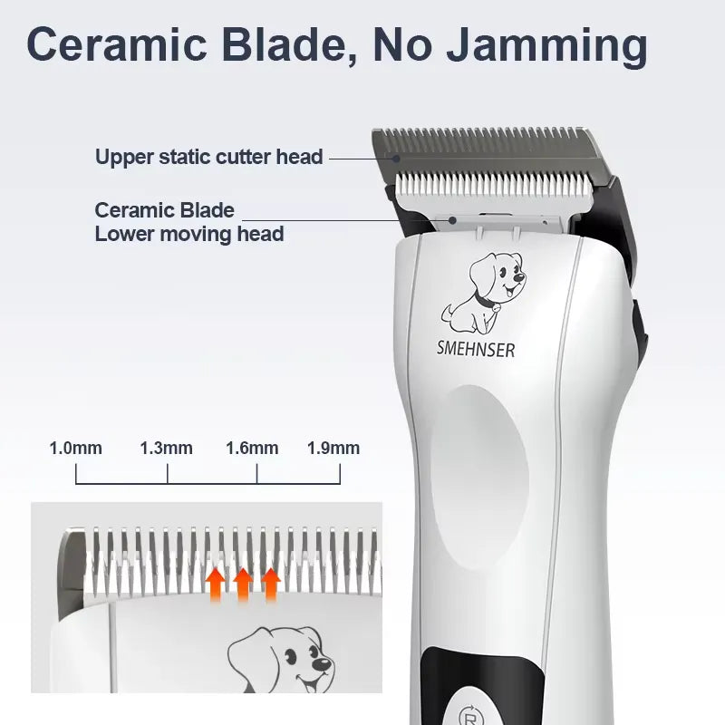 De precisionsslipade keramiska bladen är skarpa, säkra och hållbara, designade för en jämn och skonsam klippning utan att dra i pälsen. Med tre hastighetslägen och sex medföljande skyddskammar kan du anpassa klipplängd och effekt efter alla pälstyper. Tillverkad i slitstark ABS-plast med en energieffektiv motor är SMEHNSER T2B ett hållbart val som kombinerar kvalitet med miljömedvetenhet.