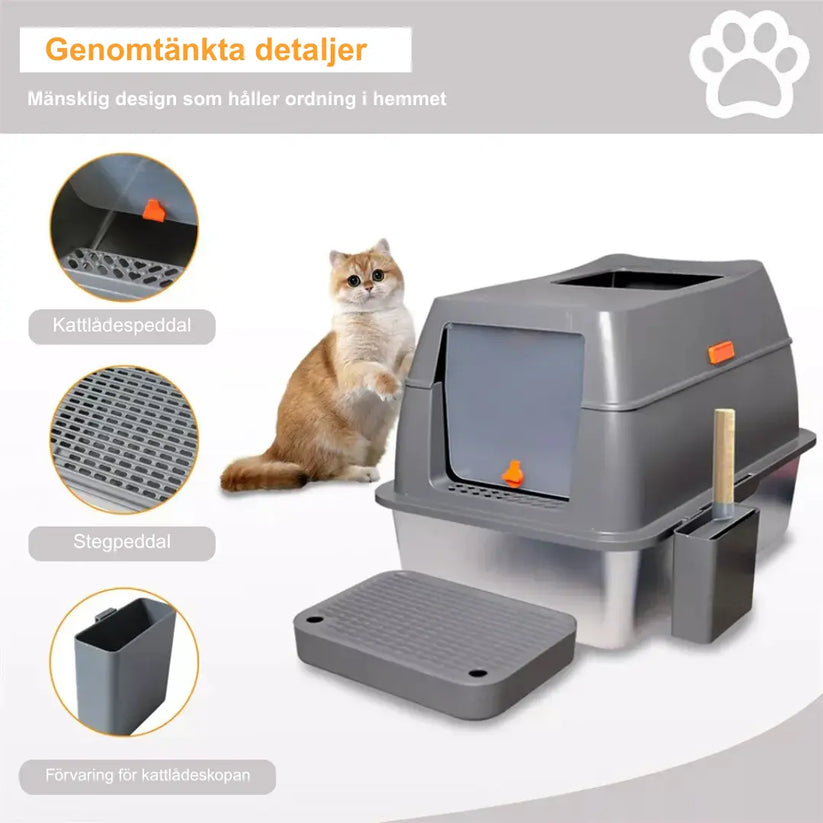 Den invändiga skålen i rostfritt stål är hygienisk och lätt att rengöra, då materialet inte absorberar lukt, urin eller bakterier. Detta ger en fräschare miljö för katten och förenklar ditt underhåll.