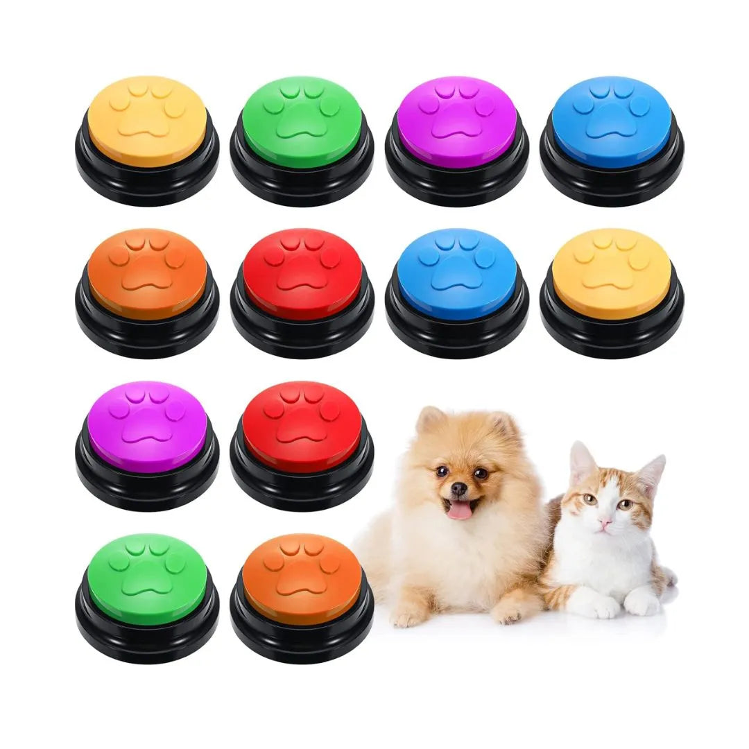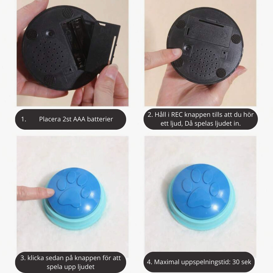 Knapparna är batteridrivna (batterier ingår ej) och finns i set om 4, 8 eller 12, vilket gör det enkelt att anpassa efter hur många kommandon du vill lära ut. Placera dem i hemmet där ditt djur vistas mest och upptäck en helt ny nivå av samspel. Ett perfekt hjälpmedel för både träning och fördjupad förståelse – beställ dina talande knappar idag.