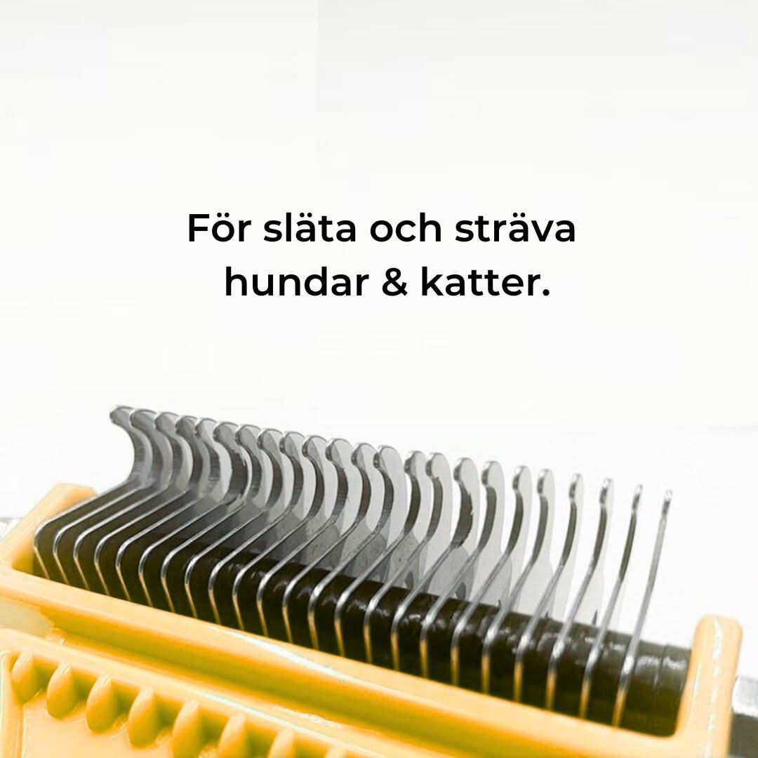 Är du trött på att päls från din fyrbenta vän täcker hela hemmet? Med vår tovborste kan du enkelt och smärtfritt ta bort underullen som annars sprider hår överallt. Den hjälper inte bara till att reda ut besvärliga tovor som kan göra din hund eller katt obekväm, utan motverkar också att bakterier och svamp får fäste i pälsen. De runda borsttänderna masserar varsamt och gör borstningen till en skön stund för din älskling, samtidigt som det ergonomiska handtaget gör det lätt för dig att ge din pälsbeklädda vän den omsorg den förtjänar.