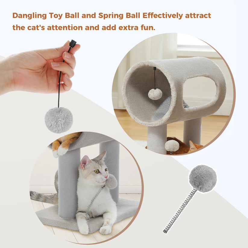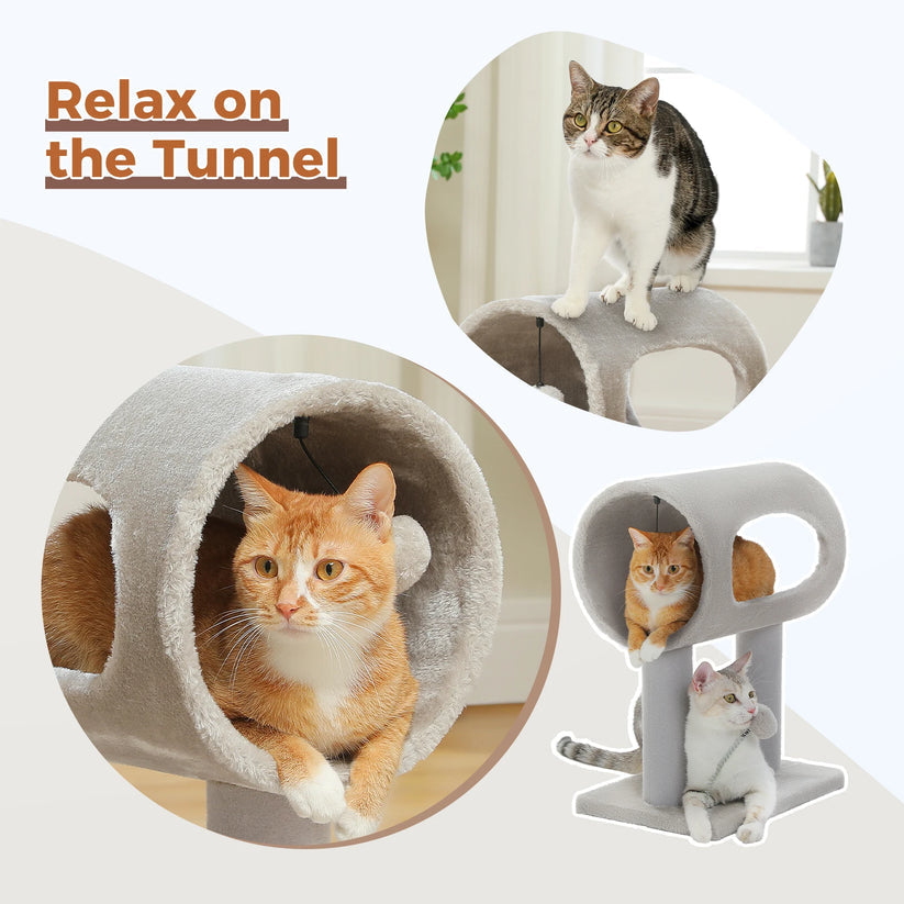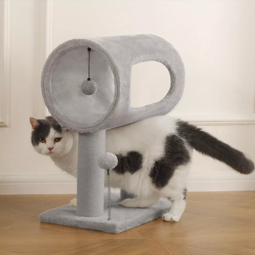 Ge din katt en trygg och rolig plats med detta kompakta klösträd som kombinerar vila, lek och naturlig klösning. Med mjuk tunnel, hängande leksaker och tåliga klöspinnar skapas en stimulerande miljö för katter i alla åldrar.