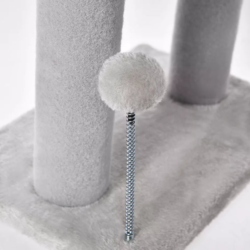Trädet är tillverkat av slitstarkt trä och klätt i mjuk plysch för maximal komfort. De robusta klöspinnarna hjälper till att tillfredsställa klösbehovet och minskar risken för skador på möbler och inredning.